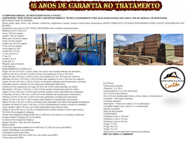 - Lambril 22 mm espessura (no lugar do forro de 8 mm e para paredes do chalé)