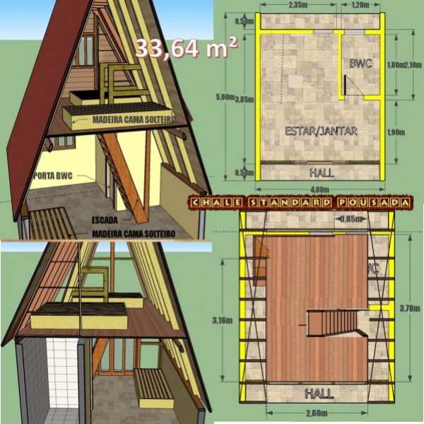 CHALÉ 33,64 m² pavimento inferior 19,25 m² e pavimento superior 14,39 m²